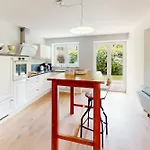 - ❓Is there a kitchen available at this spacious Garden apartment for guest use?Yes, this spacious Garden apartment is furnished with an equipped kitchen and offers an electric kettle, a fridge, and kitchenware as well.